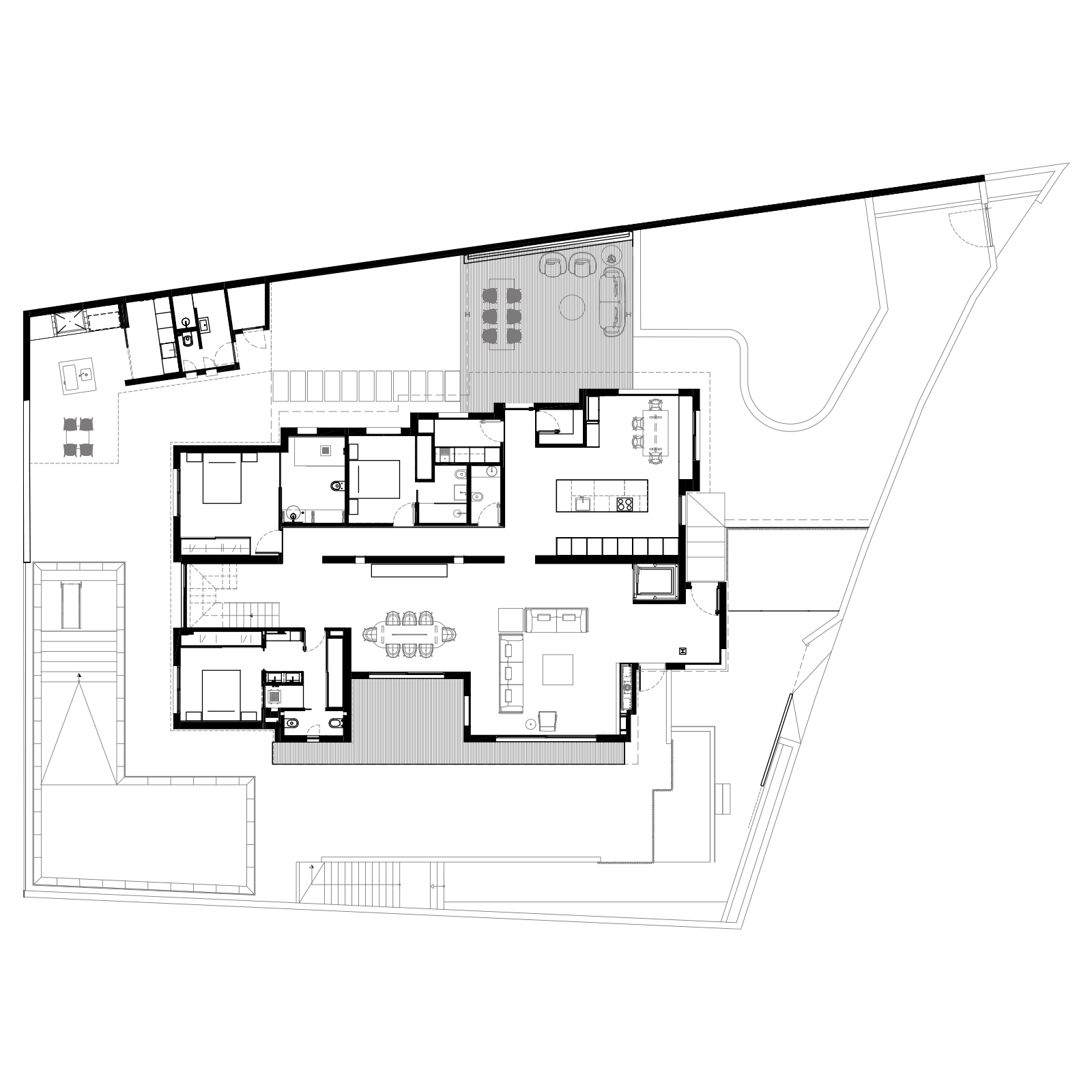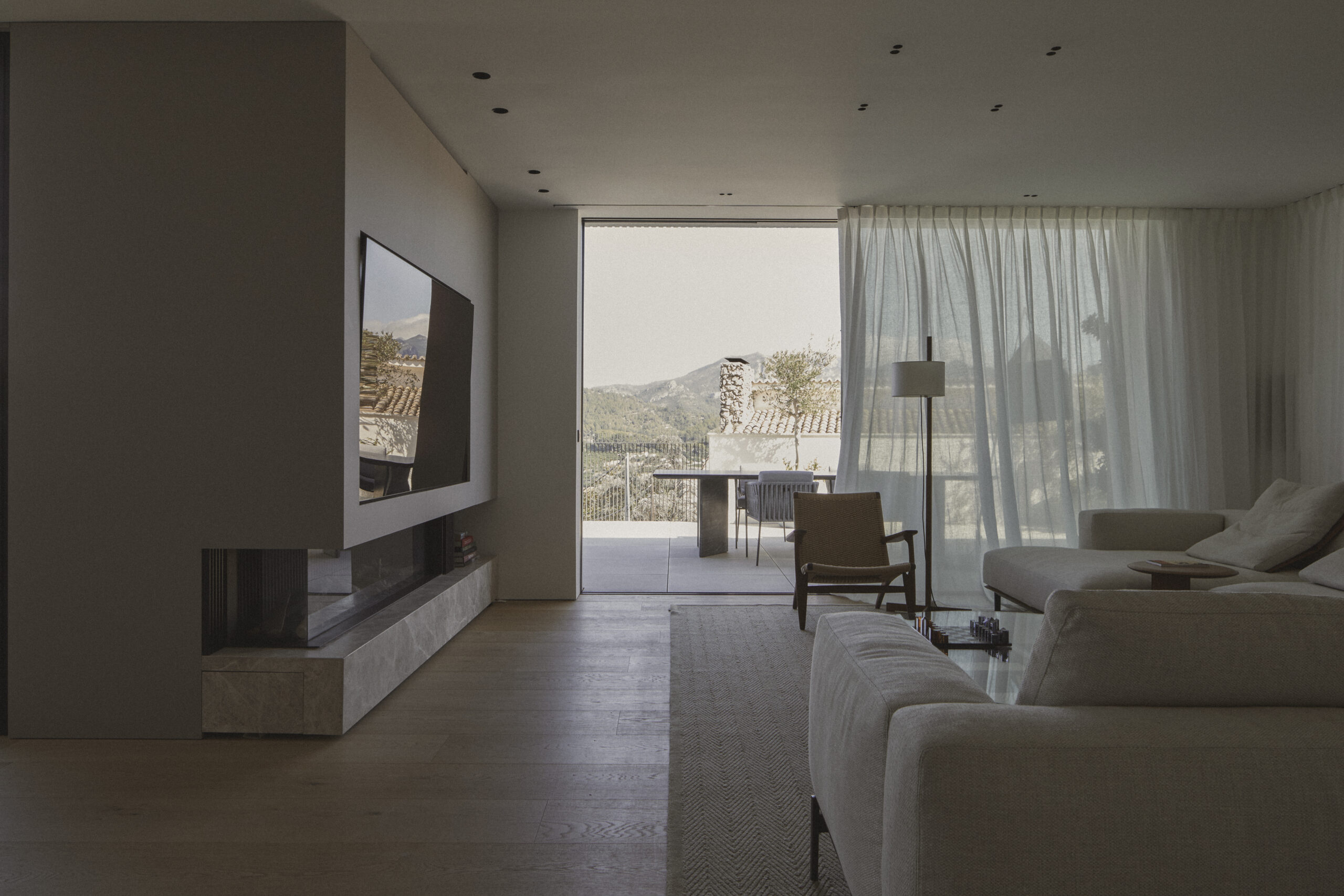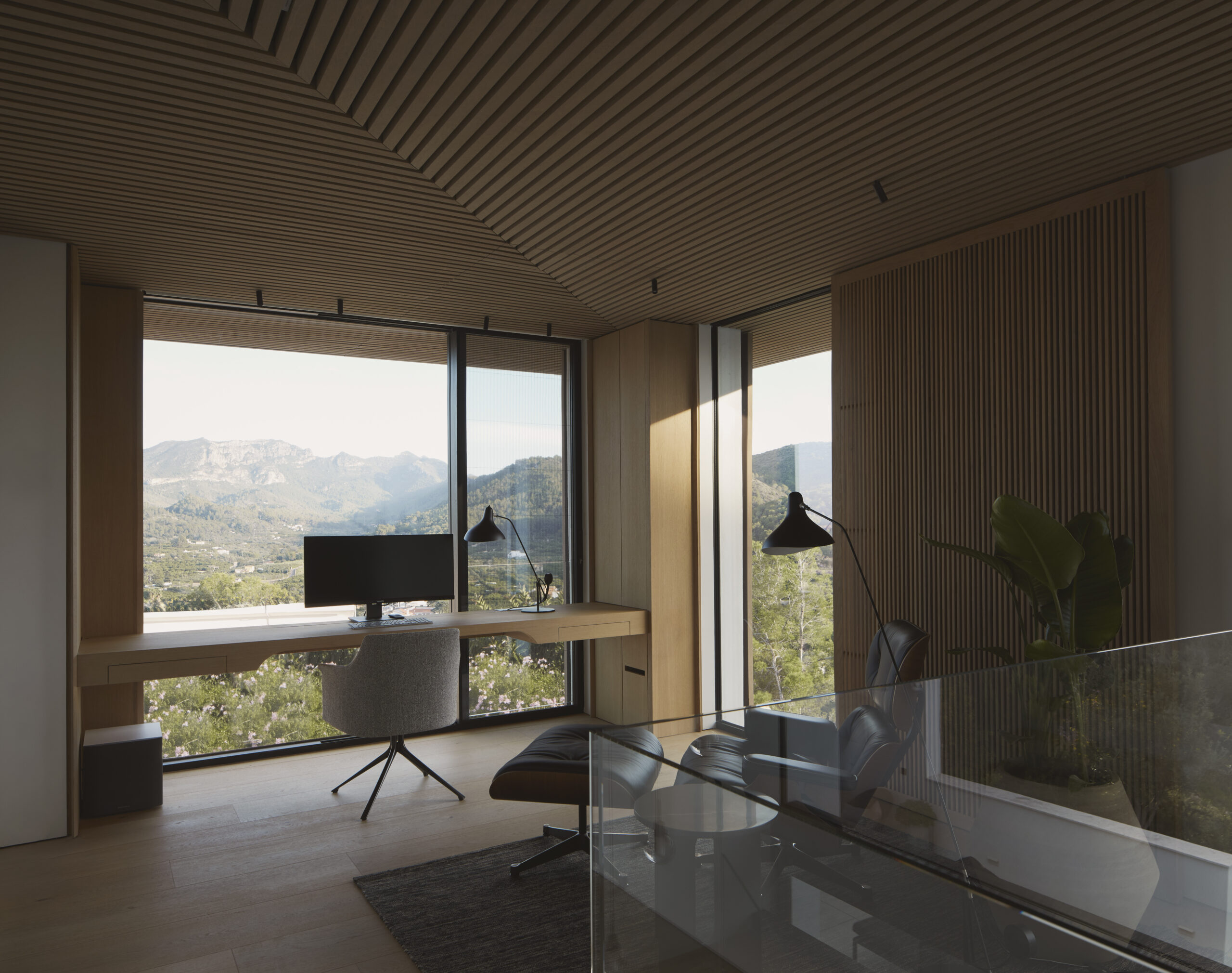 El proyecto consiste en la adecuación arquitectónica y de interiorismo de una vivienda unifamiliar ubicada en un entorno de montaña, condicionada por la topografía del terreno y las preexistencias constructivas. La intervención parte de un estudio detallado de las condiciones técnicas y funcionales de la vivienda con el fin de optimizar la accesibilidad y mejorar la circulación interior, entendidas como factores determinantes del confort espacial. Se resuelven técnicamente distintos elementos de conexión y recorrido —desniveles, transiciones entre estancias y relaciones verticales y horizontales— mediante soluciones constructivas específicas que permiten una circulación continua y eficiente. Asimismo, se amplían y generan nuevas aperturas para mejorar la captación de luz natural, reforzar las visuales hacia el paisaje y establecer puntos de fuga que intensifican la relación entre interior y exterior. El proyecto adopta un lenguaje arquitectónico depurado y esencial, apoyado en elementos diseñados ad hoc que responden a criterios funcionales y constructivos, aportando coherencia técnica y carácter propio al conjunto.
