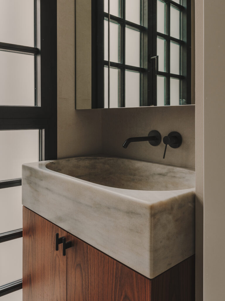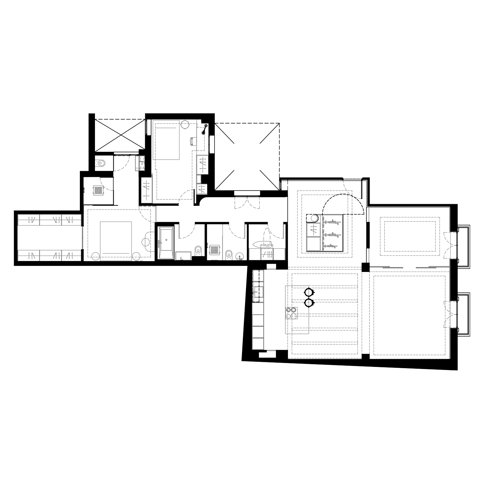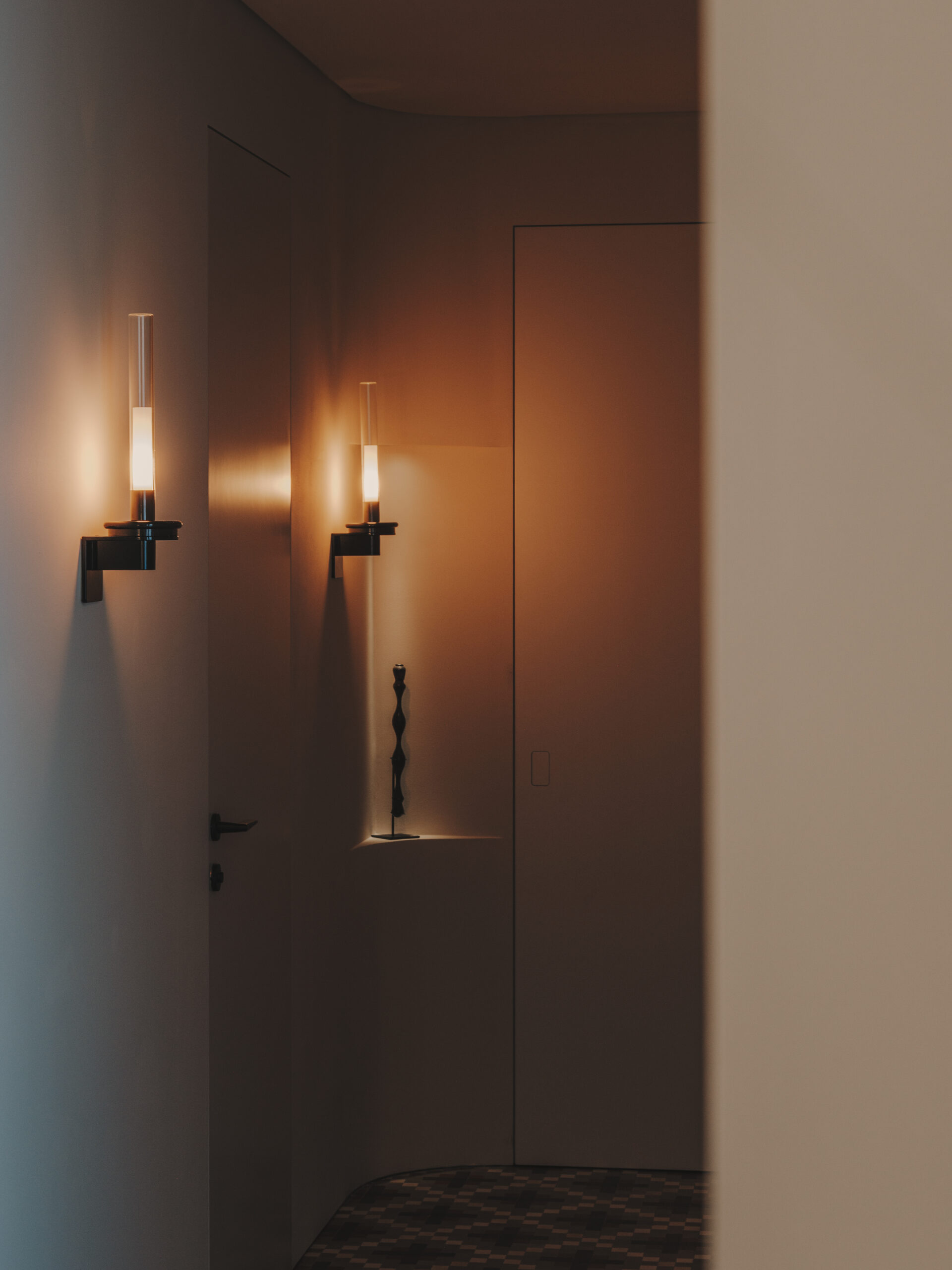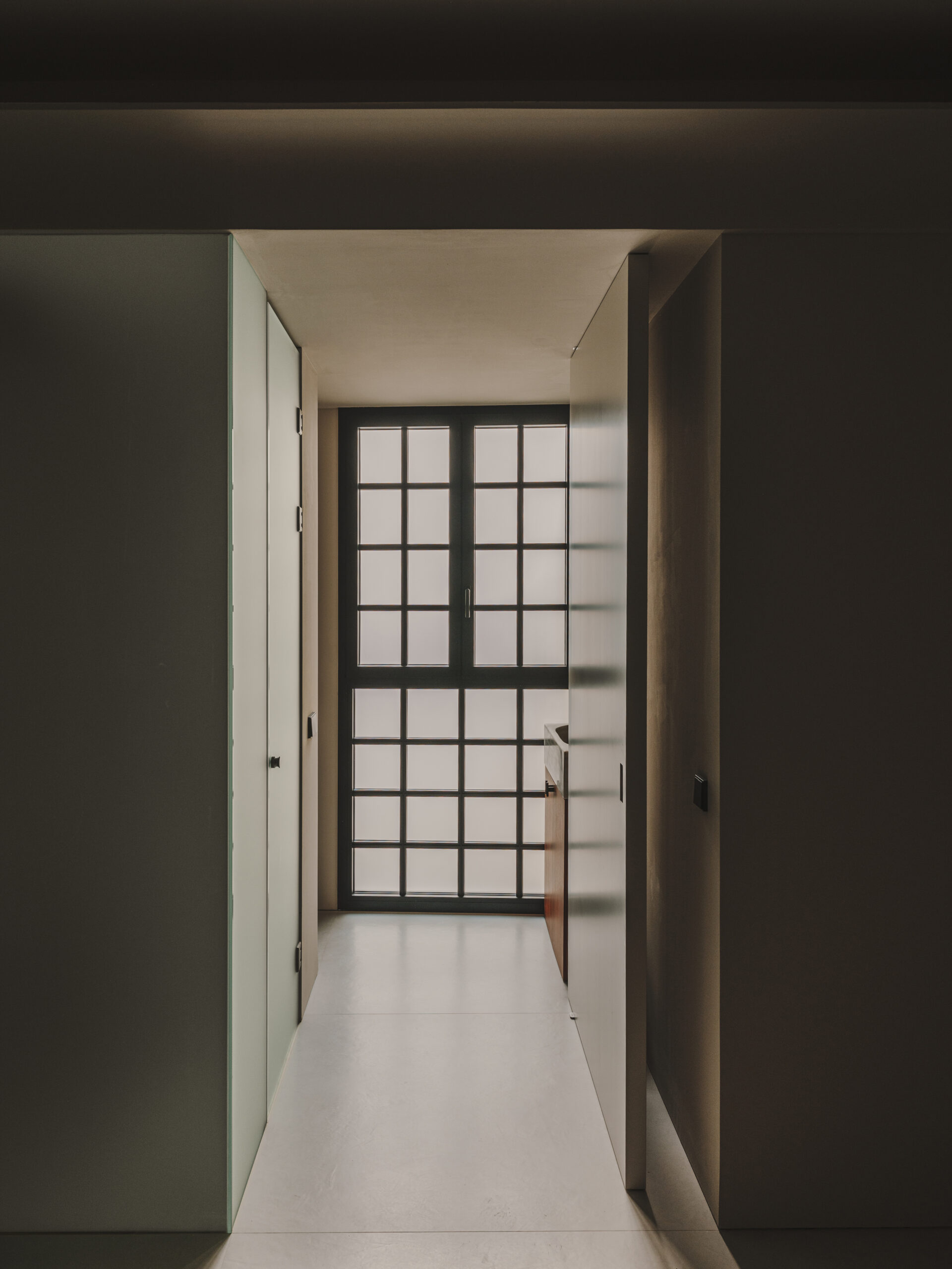 El proyecto se desarrolla en un edificio del centro histórico con elementos estructurales y decorativos de alto valor patrimonial, cuya conservación condiciona la intervención. Se prioriza la preservación y puesta en valor de los elementos originales, integrándolos en una propuesta funcional y contemporánea. El elemento central es el pavimento de mosaico de Nolla, un revestimiento hidráulico fabricado históricamente en esta ciudad, caracterizado por su resistencia, composición cerámica y diseños geométricos de tradición modernista. Se procede a su restauración y consolidación, asegurando la compatibilidad de nuevos materiales y morteros con los existentes, garantizando durabilidad y estabilidad dimensional. Las nuevas geometrías se diseñan con precisión, incorporando reminiscencias clásicas estilizadas, que se ejecutan en materiales compatibles y técnicas constructivas contemporáneas sin restar protagonismo al pavimento histórico. La intervención deja a la vista el sistema tradicional de construcción: estructura de madera de cubierta y forjados de bovedilla cerámica. Estos elementos se refuerzan estructuralmente donde es necesario, con intervención mínima, preservando su integridad y carácter original. Se presta especial atención a la iluminación y percepción de la materialidad, utilizando estrategias que resaltan la textura de la madera y la bovedilla, así como la continuidad y geometría del mosaico. La propuesta establece un equilibrio entre conservación, legibilidad histórica y soluciones constructivas actuales, asegurando tanto la estabilidad estructural como la coherencia estética del conjunto.