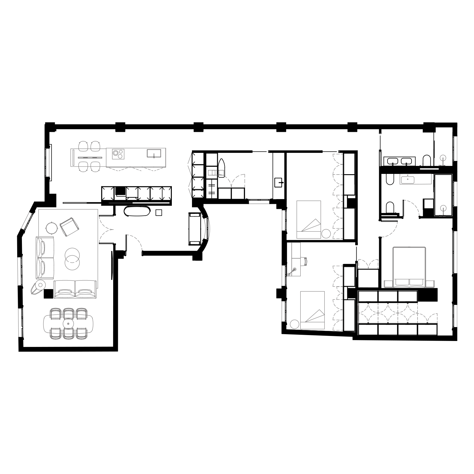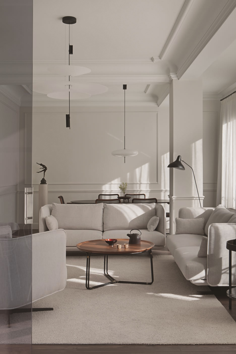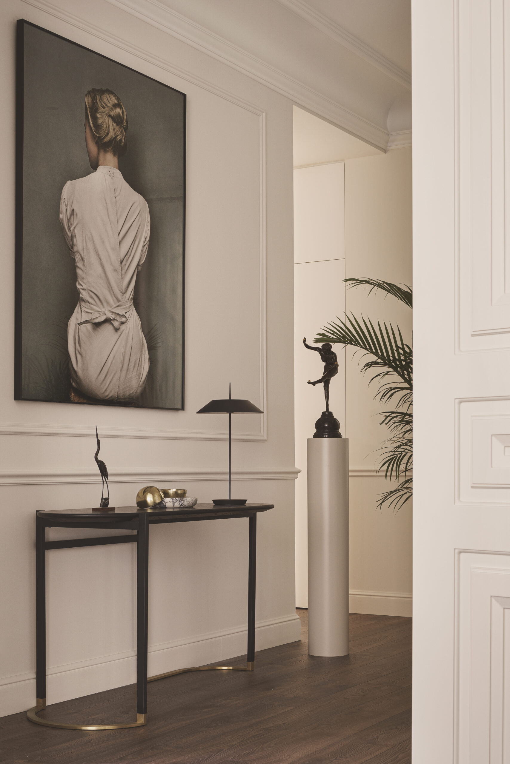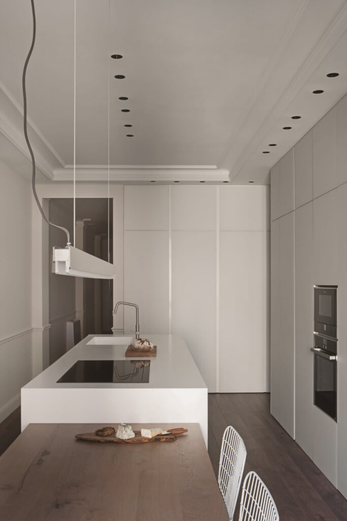 Este proyecto se desarrolla en una vivienda situada en un edificio señorial de 1951 que, tras sucesivas transformaciones, había perdido por completo sus elementos originales. Lejos de entender esta ausencia como una limitación, la intervención se plantea como un ejercicio de interpretación del lenguaje arquitectónico tradicional, reinterpretado desde una mirada contemporánea. El proyecto no busca la reconstrucción literal de lo perdido, sino la evocación de una atmósfera clásica a través de la proporción, el orden y la claridad espacial. La composición de los espacios, la jerarquía de estancias y la relación entre llenos y vacíos remiten a una forma de habitar serena y equilibrada, propia de la arquitectura doméstica señorial. El resultado es una vivienda que, sin recurrir a elementos históricos, interpreta el espíritu clásico del edificio desde el presente, construyendo una identidad propia basada en la proporción, la elegancia y la calma.