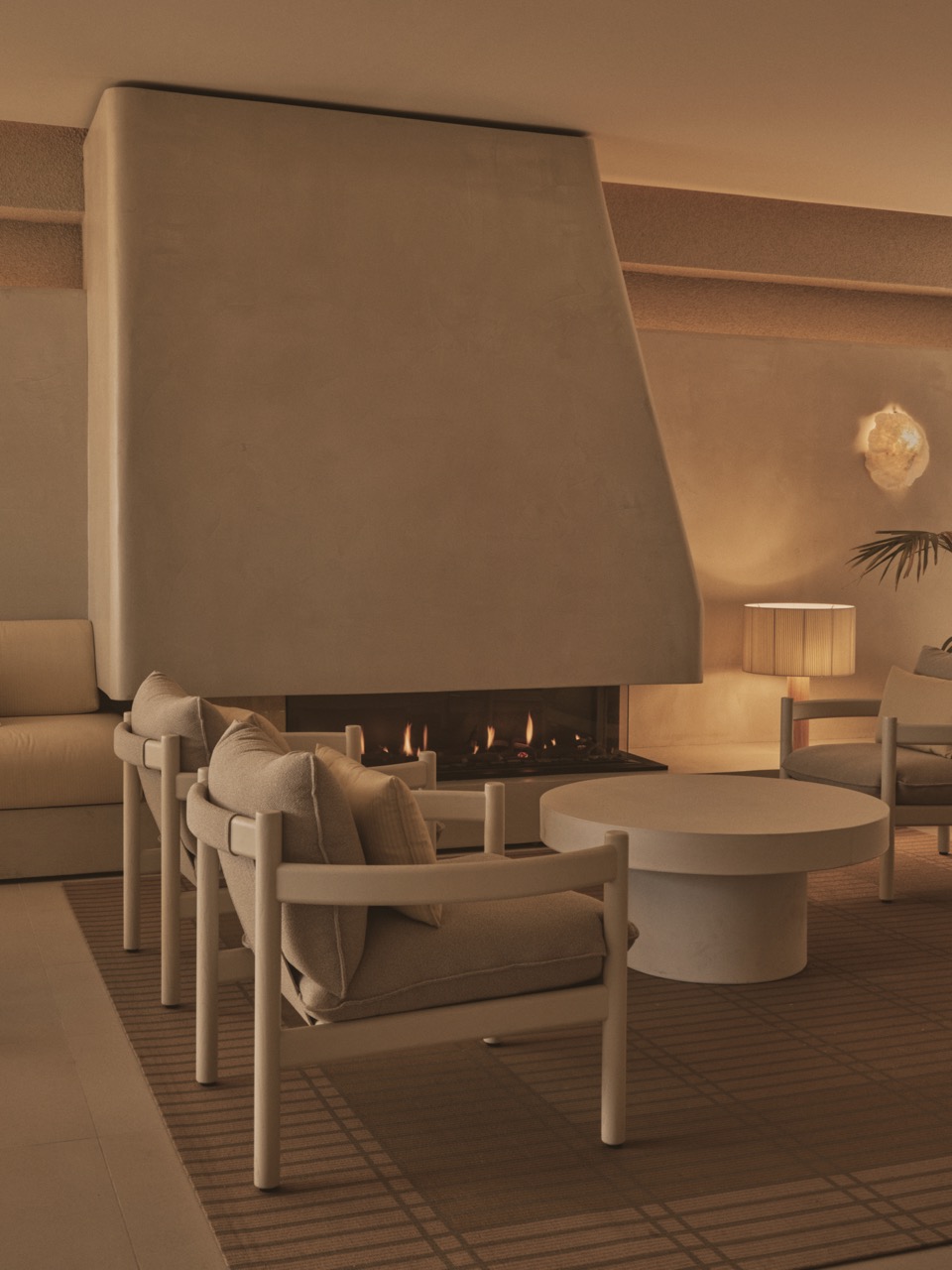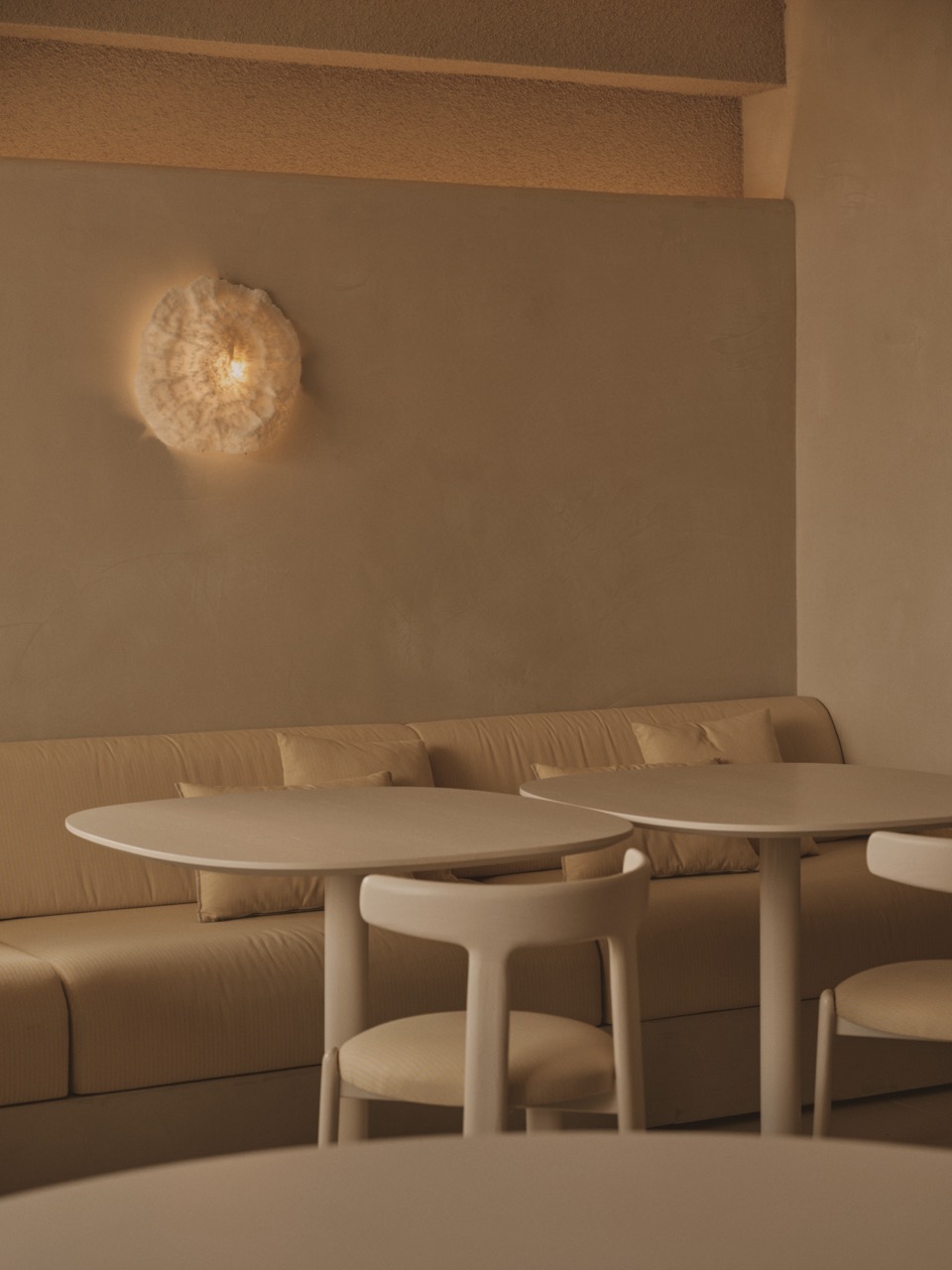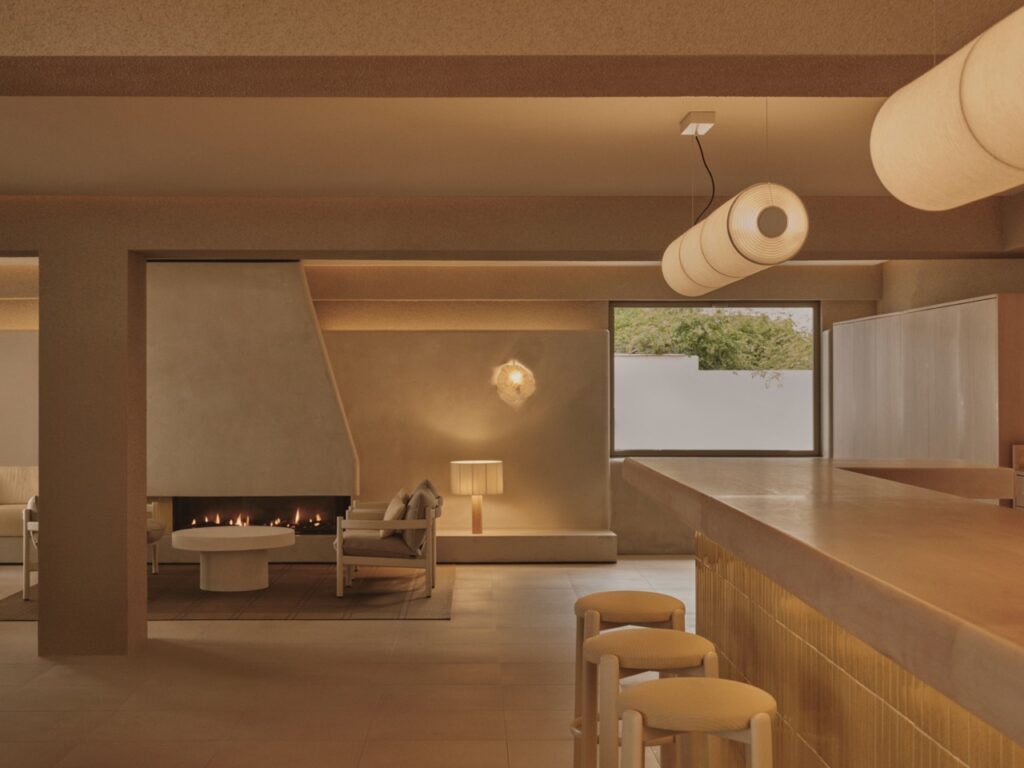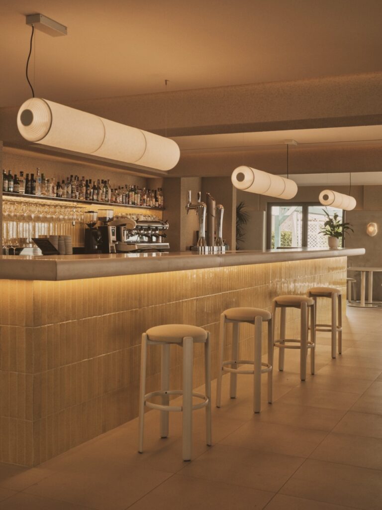 Ubicado frente al mar, este restaurante se concibe como un refugio costero donde la arquitectura acompaña y amplifica la experiencia sensorial del entorno. La propuesta interior apuesta por una atmósfera cálida y envolvente, en la que predominan los tonos amarillos y arena, evocando la luz del sol, la playa y la materia natural del paisaje. La envolvente interior se entiende como un elemento plástico y continuo, capaz de deformarse y adaptarse como lo hace la arena ante cualquier acción ejercida sobre ella. Las superficies no se perciben como planos rígidos, sino como una piel moldeada por fuerzas invisibles: el viento, el agua, el paso del tiempo. Las paredes se transforman así en superficies vivas mediante un juego sutil de texturas y curvaturas que generan profundidad, sombras cambiantes y una lectura táctil del espacio. La iluminación decorativa, realizada con corales marinos, acentúa esta condición orgánica y refuerza la sensación de estar inmerso en un paisaje modelado por la naturaleza. Los vanos de fachada se amplían permitiendo la apertura total en verano y aumentando la relación interior con el paisaje exterior. El límite entre dentro y fuera se vuelve difuso, como la transición entre la arena seca y la húmeda, integrando el sonido, la luz y la brisa marina en la experiencia espacial. El proyecto se articula en torno a un núcleo de chimenea, concebido no sólo como elemento funcional, sino como corazón simbólico del lugar. Este foco térmico permite extender el uso del restaurante más allá del verano, adaptándolo a los meses de invierno sin perder su esencia costera. Así, el espacio logra un equilibrio entre lo estacional y lo permanente: una arquitectura que cambia de carácter como la propia playa, ofreciendo una experiencia acogedora durante todo el año, donde el confort, la materialidad y la relación con el paisaje marino se funden en una misma atmósfera.